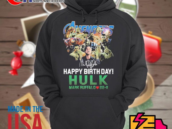 Avengers happy birthday Hulk Mark Ruffalo 22 11 signature shirt